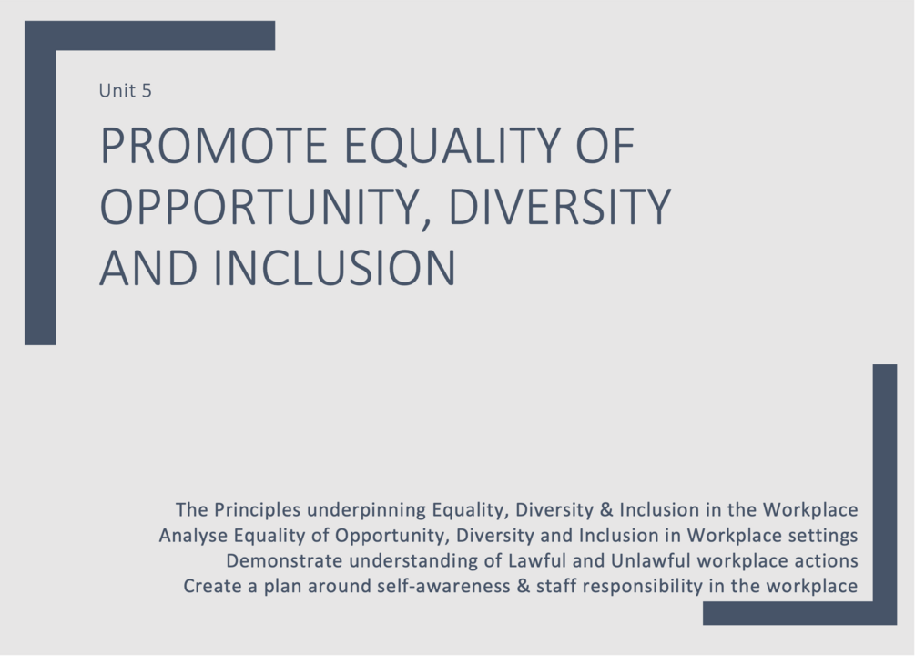 Unit 5 - Promote Equality of Opportunity, Diversity & Inclusion